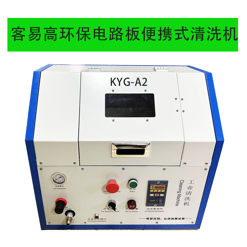 KYG-128PCBA环保电路板干冰清洗机:适用于电路板厂PCBA助焊剂残留的清洗,解决了传统电路板清洗设备需要洗板水来清洗,味道大,易燃易爆等环保问题,同时解决了传统干冰清洗躁音大,污染SMT生产车间的问题。